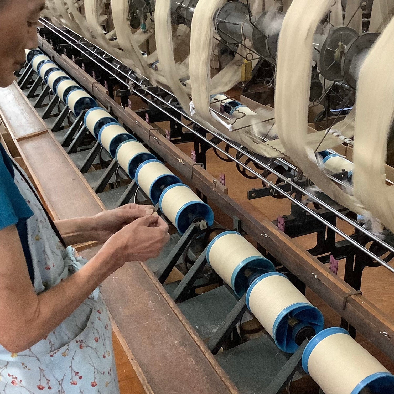 天然素材はもちろんのこと、合成繊維の取り扱いもしており、近年は二種類以上の素材を複合させた商品開発を行っています。