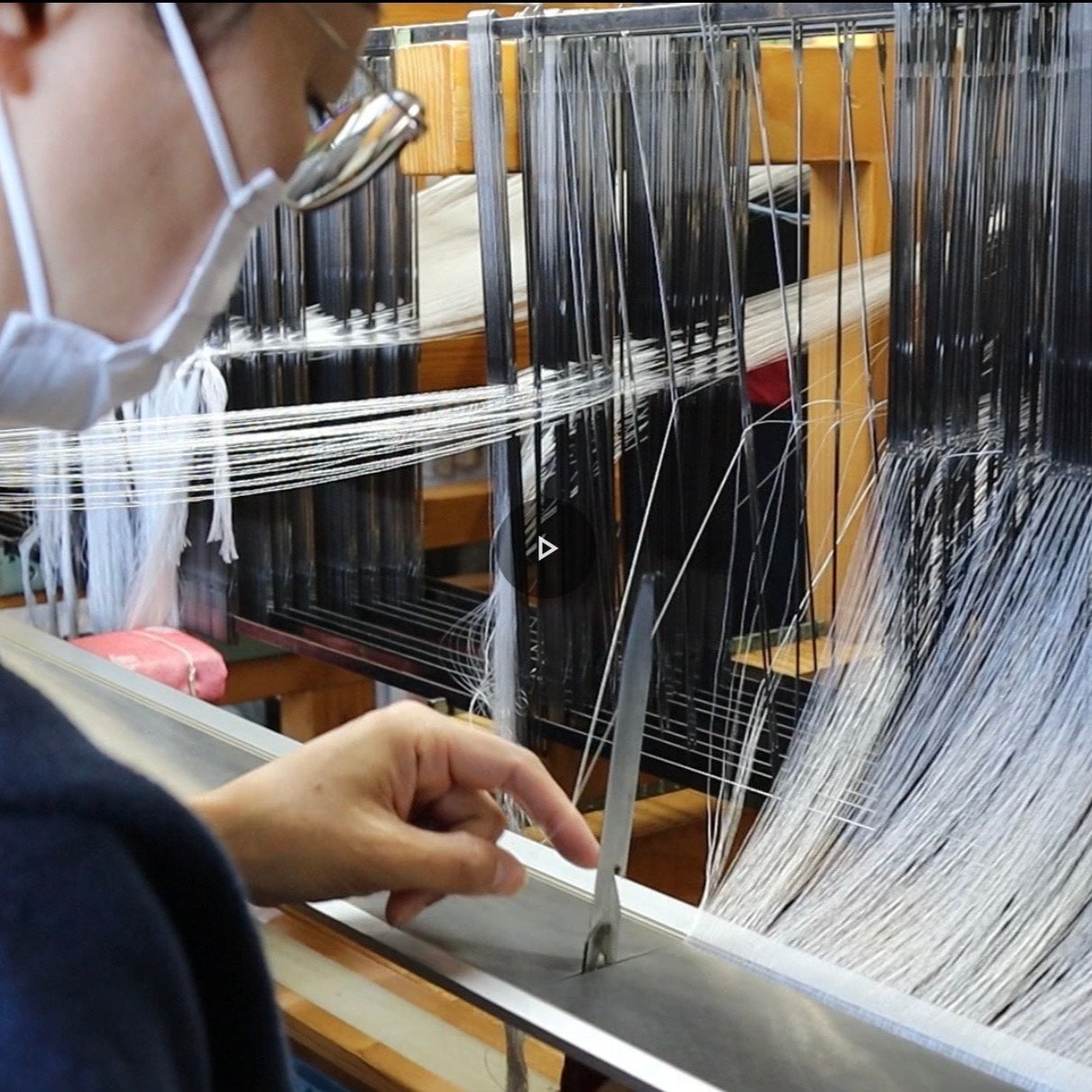 I visited the Takumi Dream Association in May 2024, and learnt so much about weaving and its history. I was introduced to Mr Ohta and talented staff, Ms Hara. They showed me their weaving studios and production methods. It was completely different to how I imagined. I thought the process would be mechanised in a factory full of computer-controlled machinery. Instead, I learnt that most of the weaving process was completed by the hands of skilled craftsmen.