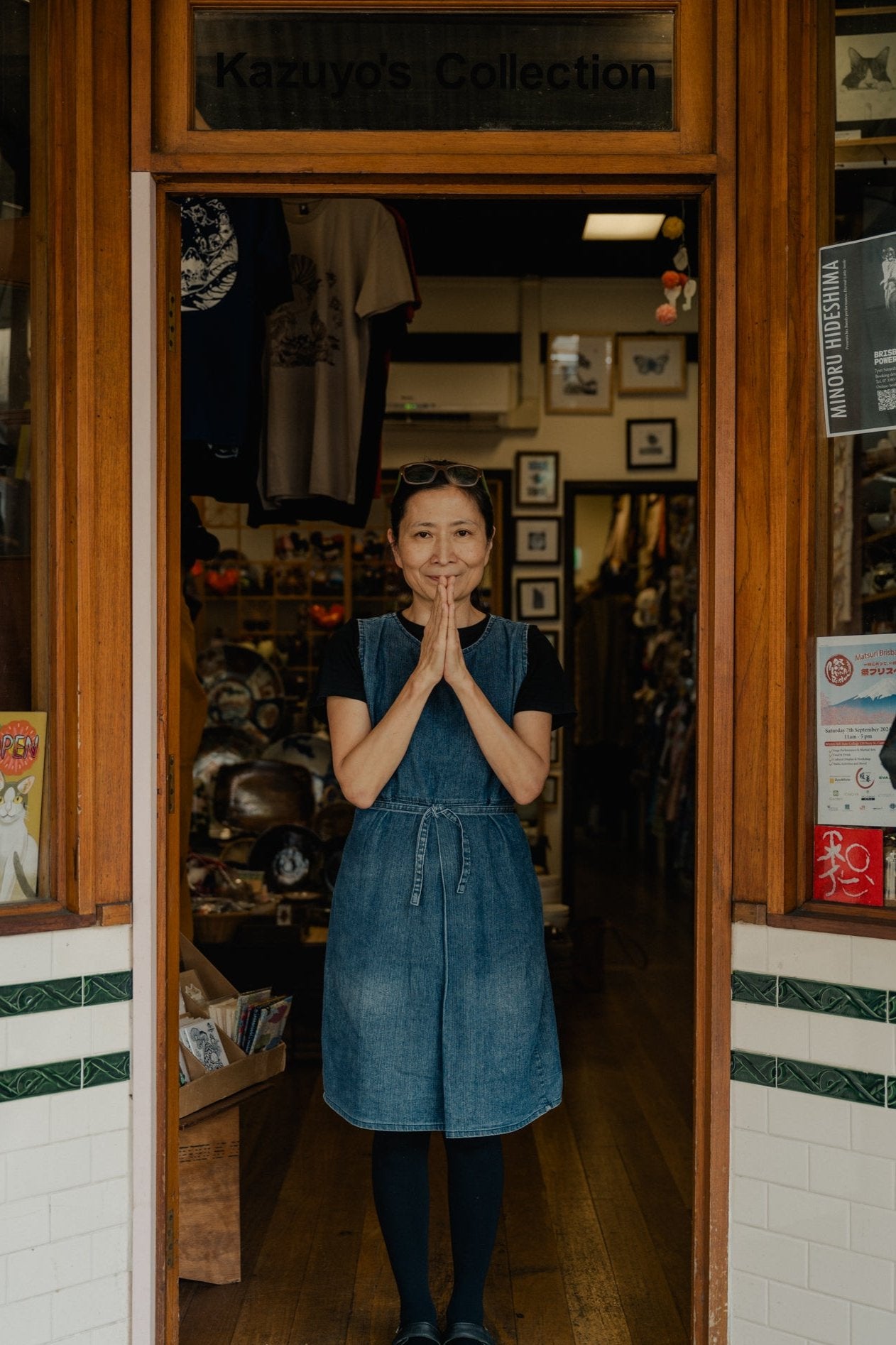 While raising her children in Brisbane, Kazuyo began repurposing kimonos and creating kimono bags and dresses. In 2008, she opened a store called Kazuyo's Collection in Paddington, which specialised in consignment sales of artists' works.